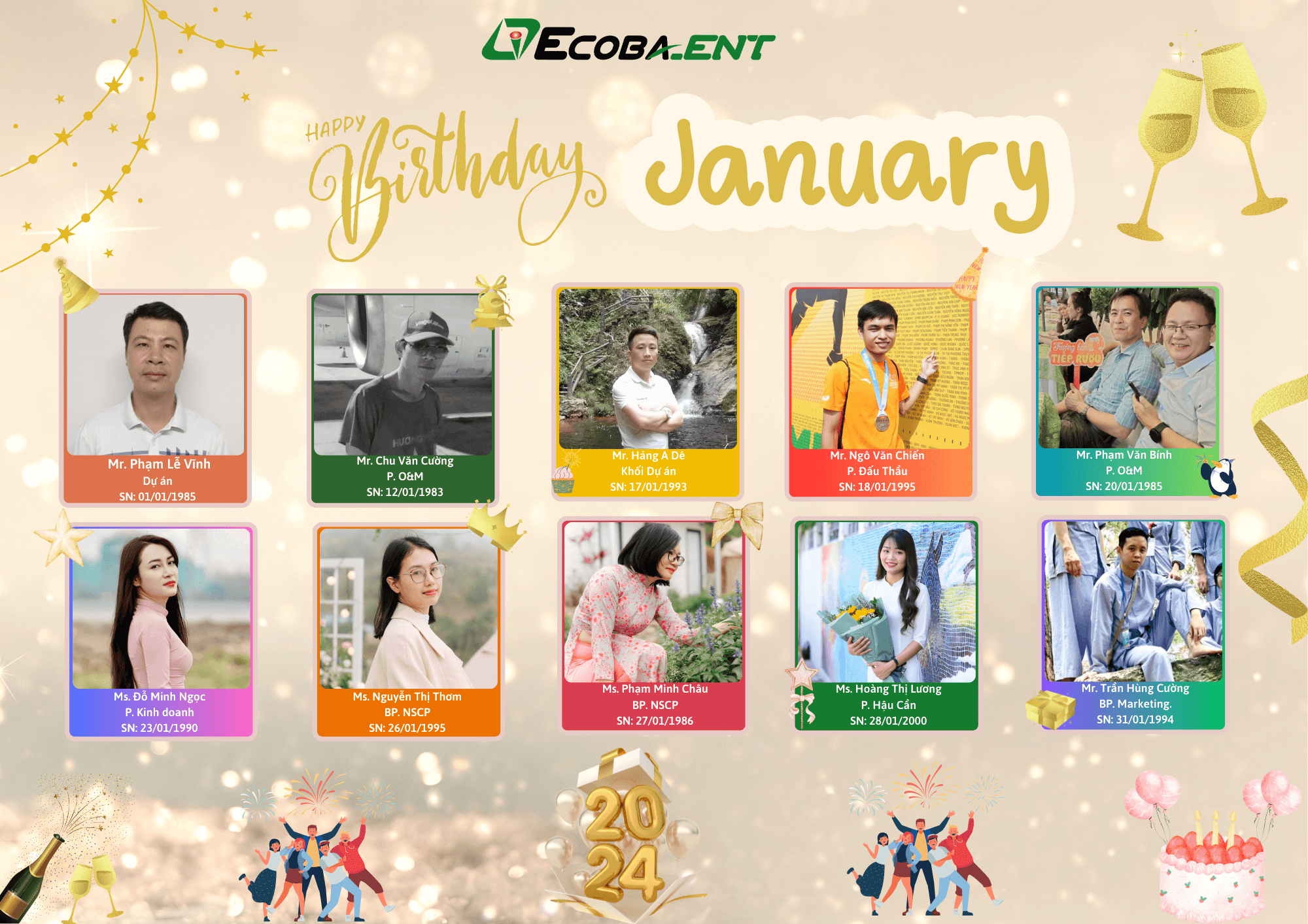 Nhân dịp sinh nhật, Gia đình Ecoba ENT chúc tất cả ACE sinh nhật tháng 1 đều có thể thực hiện những điều ấp ủ của riêng mình, một tuổi mới rực rỡ, mạnh khoẻ, nhiều niềm vui bên những người thương yêu, một tuổi mới gặp nhiều may mắn trong cuộc sống và ngày càng thành công rực rỡ hơn nữa trên con đường sự nghiệp tại Ecoba ENT.