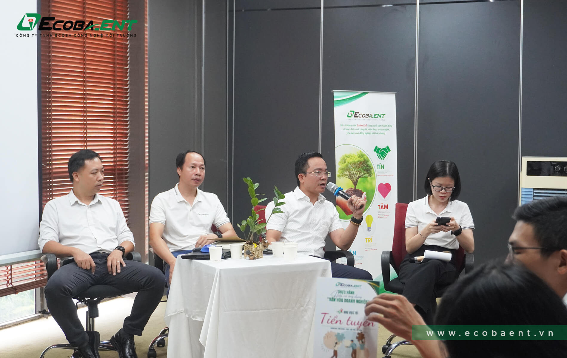 Trong phần tọa đàm, BGĐ một lần nữa khẳng định sự quan trọng của văn hóa đối với sứ mệnh của công ty cũng như sự sống còn của doanh nghiệp. Như đã nói, Bộ giá trị cốt lõi “Tín – Tâm – Trí – Nhân” của Ecoba ENT là “bộ rễ”, đây cũng là căn cứ định hình hành vi cũng như định hướng hành động của người Ecoba ENT trong công việc, từ đó góp phần hiện thực hóa sứ mệnh “Ứng dụng giải pháp công nghệ xử lý nước hiệu quả cho Khách hàng. Từ đó, đảm bảo sự phát triển bền vững cho Khách hàng, Cộng đồng, Xã hội và gia tăng phúc lợi cho CBNV công ty.” Người Ecoba ENT phải hiểu sâu sắc, vận dụng các giá trị ấy trong cách thực hiện các chiến lược và phương pháp làm việc.